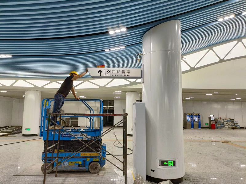2021年4月,愛奧尼依托十多年導(dǎo)向標(biāo)識項目的沉淀,以過硬的制造技術(shù),豐富的安裝經(jīng)驗一舉中標(biāo)長沙 市軌道交通6號線的導(dǎo)向標(biāo)識制作與安裝。2022年3月又成功中標(biāo)長沙地鐵6號線烈士公園南站文化藝術(shù)墻 制作與安裝。公司領(lǐng)導(dǎo)高度重視長沙地鐵6號線項目,各部門同事密切配合,克服一切困難,日夜奮站至 保質(zhì)保量完成交付,并多次在軌道交通調(diào)研檢查中獲得高度評價。